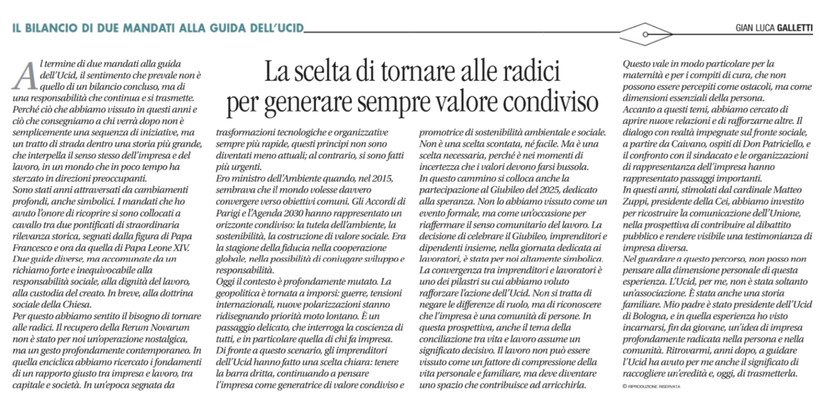 - Il bilancio di due mandati alla guida dell’UCID, di Gian Luca Galletti.