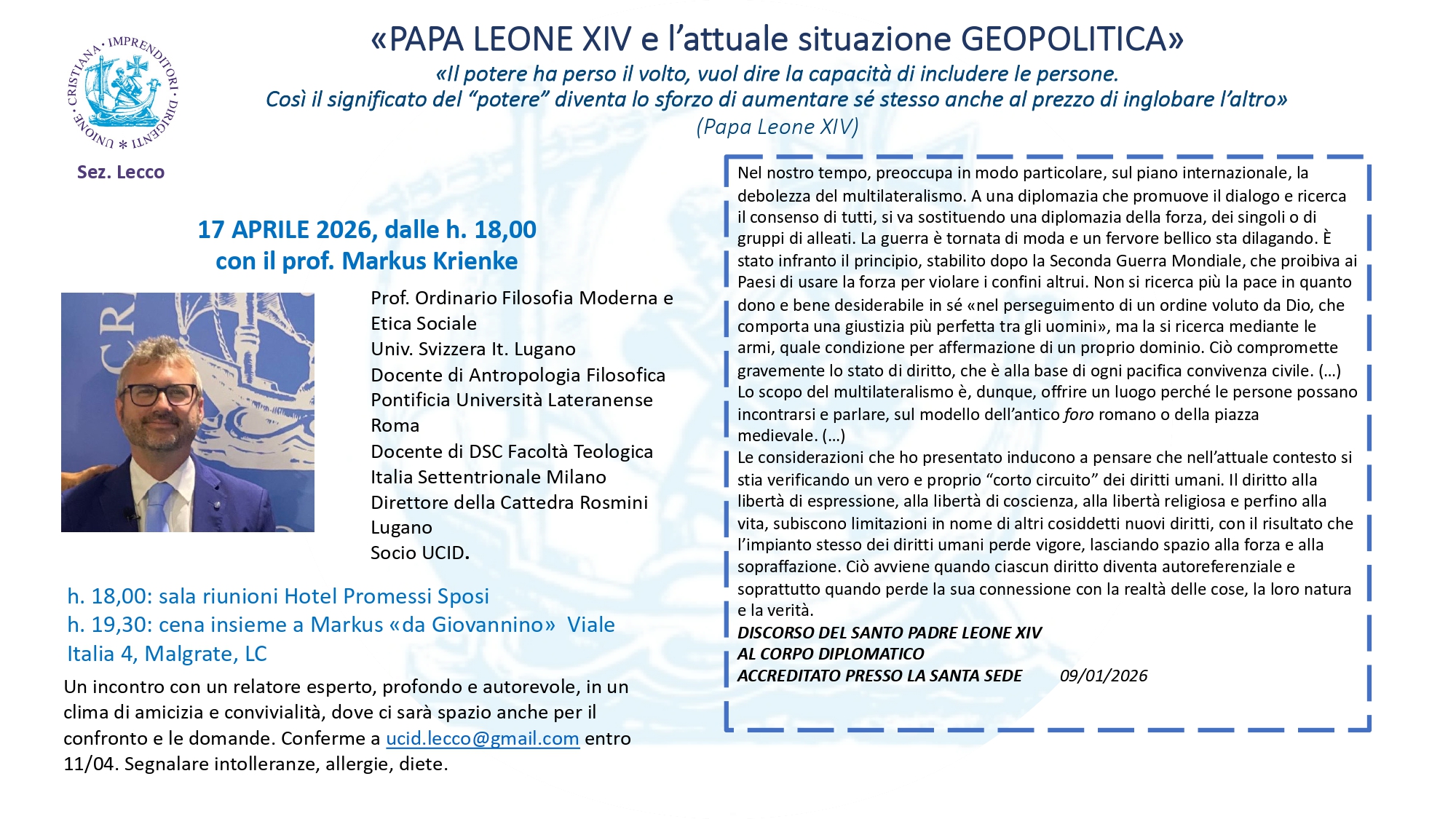 Incontro organizzato dalla Sezione UCID di Lecco.