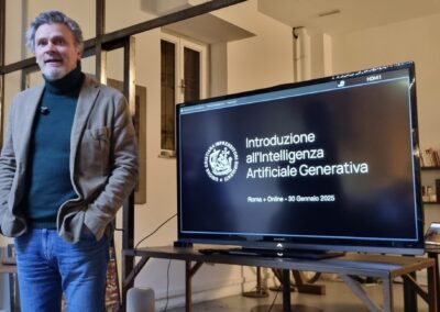 Come prima tappa del percorso “AI ed etica” promosso dal Movimento Donne di UCID Roma e grazie al socio giovane Manuel Amelio, giovedì scorso siamo stati ospiti nell’HQ di Trastevere di Arkage, prima agenzia di comunicazione post-digital d’Italia, per partecipare alla Masterclass “Introduzione all’AI generativa”.