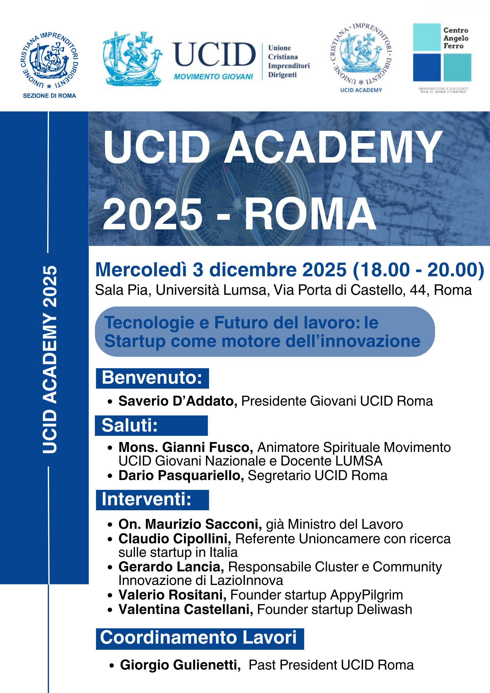 UCID ACADEMY 2025 – Roma “Tecnologie e Futuro del lavoro: le Startup come motore dell’innovazione” – Mercoledì 3 dicembre 2025